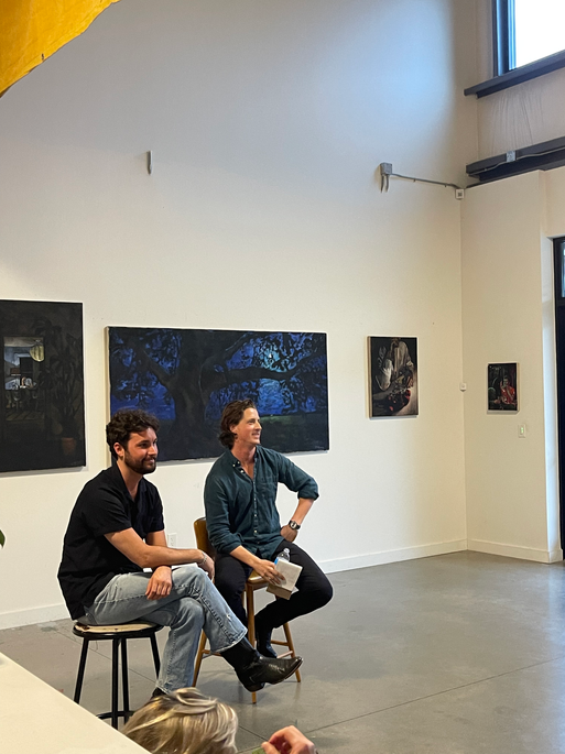 Artist RF. Alvarez, Austin’s rising star, graciously welcomed our Campbell Art Collective members into his studio for an exclusive viewing of his breathtaking still life and figurative works. With eloquence, RF. spoke about his journey to becoming an artist, sharing the personal stories behind each piece, the significance of his nocturnal color palette, and how his art draws from his experience as a queer man. Despite being a native Texan, RF. never envisioned returning to his home state until he met his husband, a true “Austinite”. Together, they've made Austin their home, and RF. Alvarez has flourished, finding pure joy in his identity as a queer man and his artistic pursuits. After experiencing his artworks firsthand, our members left with a profound personal connection to RF. Alvarez and his breathtaking artworks, which are poised to garner widespread global attention.